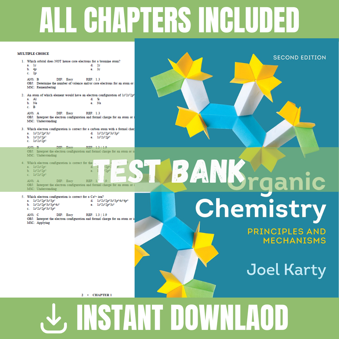 Prepare to excel in your nursing exams with our comprehensive Test Bank for Organic Chemistry: Principles and Mechanisms, 2nd Edition. Authored by the esteemed Joel Karty and published in 2021, this test bank is designed specifically for nursing students focusing on organic chemistry fundamentals. With an emphasis on principles and mechanisms, it equips you with the knowledge needed to tackle challenging exam questions confidently.
